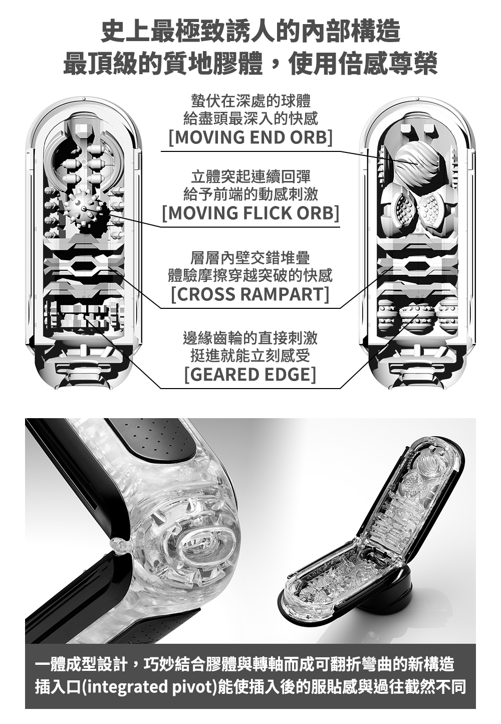 『FLIP 0(ZERO) BLACK』黑色版,擁有與『FLIP 0(ZERO) 』白色版截然不同感受的超高彈力,回彈刺激緊實包覆帶來強烈而直接的快感。