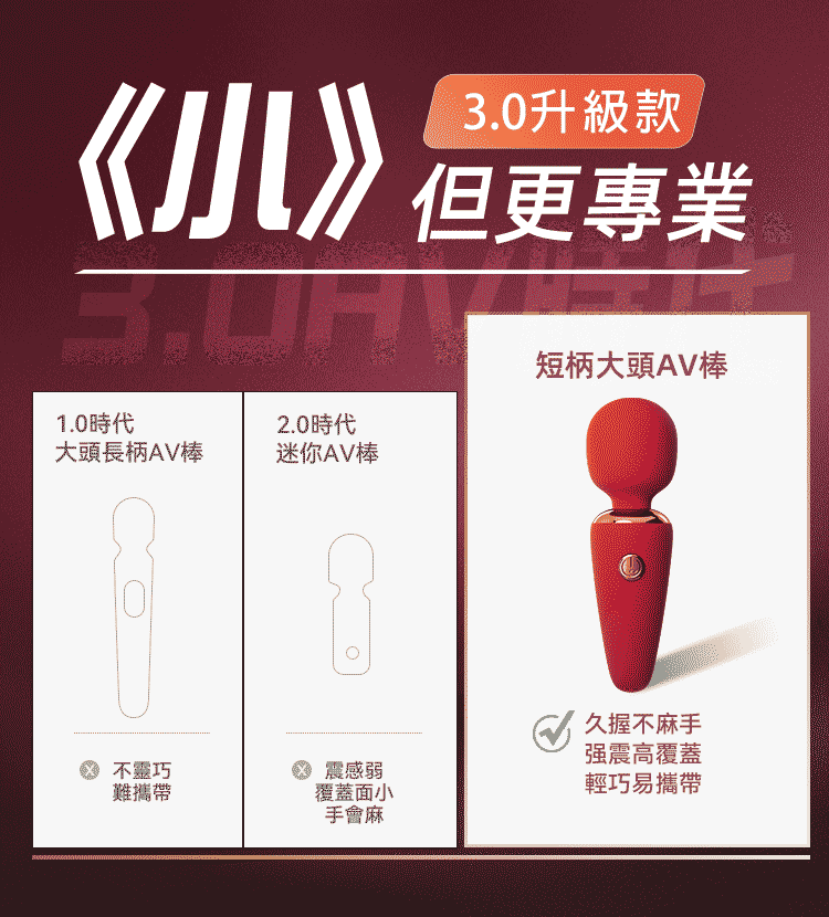 迷你身大棒頭,10頻-雪糕筒AV震動棒-刷新體驗,久握不麻手、強 震高覆蓋、輕巧易攜帶;棒頭細膩矽膠,柔軟舒適;61MM大直徑, 強震全覆蓋,強制高潮讓TA一按求饒 覆蓋面更大同時激發片唇,陰 蒂兩種快感; 10頻強震,經典3+7模式,任君調情。
