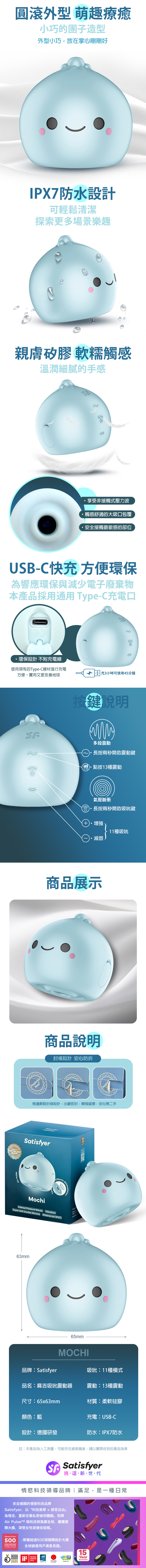 品名:Satisfyer|Mochi|麻吉 陰蒂吸吮震動器 藍