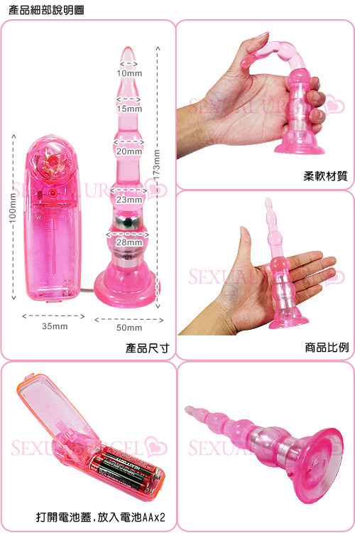 .商品名稱:迷惑真情人.6.6吋電動連環珠後庭棒-粉